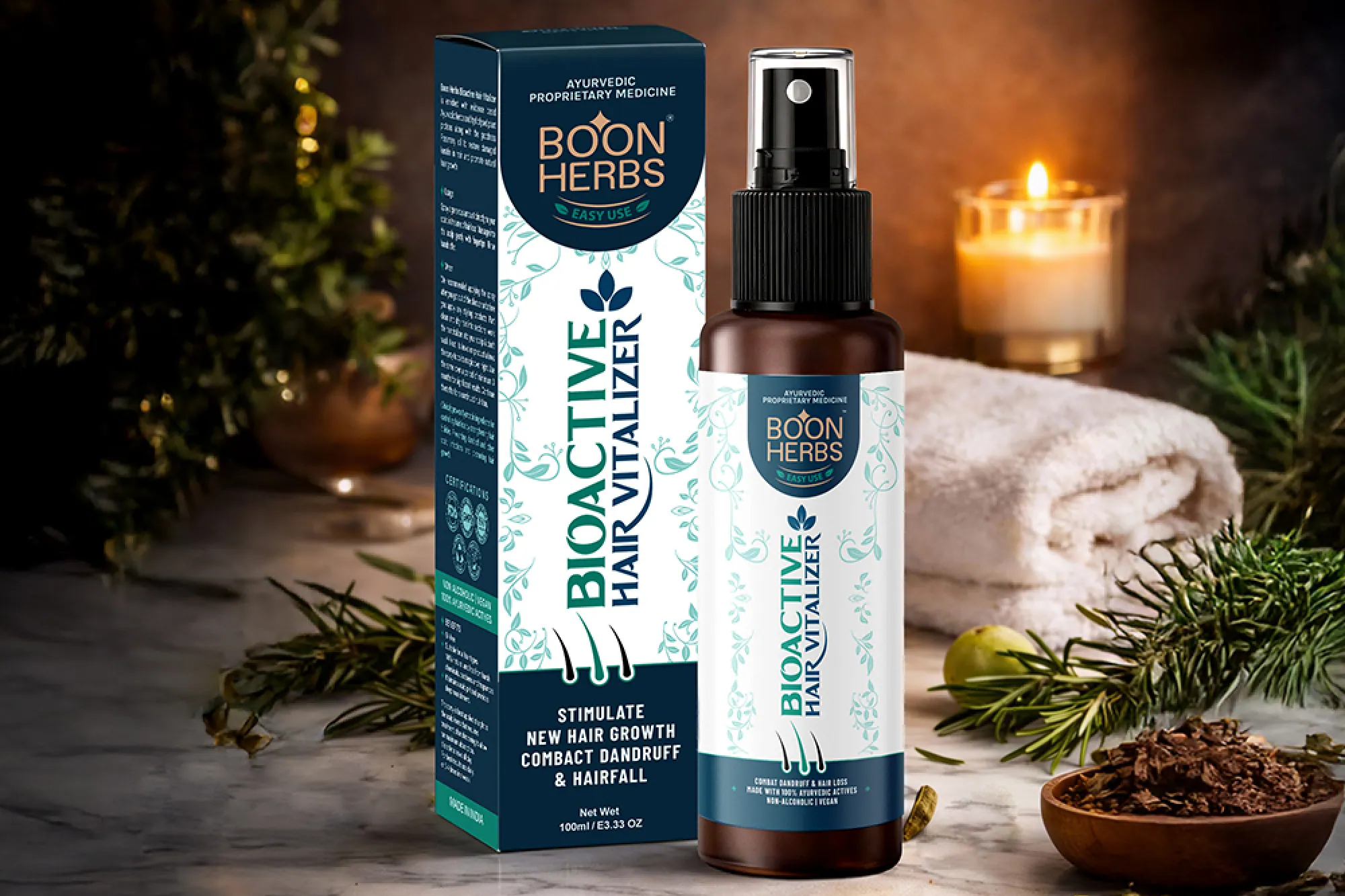 Struggling with dandruff, hair fall, or thinning hair? Boon Herbs Bioactive Hair Vitalizer, enriched with evidence-based Ayurvedic herbs, hydrolyzed plant proteins, and Rosemary oil, repairs damaged keratin, strengthens roots, and stimulates natural new hair growth for healthier, fuller hair.